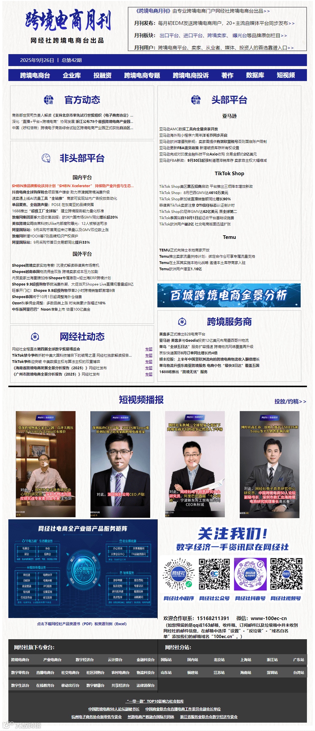 网经社跨境电商台(CBEC.100EC.CN)是专业跨境电商门户,关注出口跨境电商、进口跨境电商、跨境电商服务商(跨境物流、跨境支付、跨境技术、跨境营销等)、跨境政策、跨境园区等,提供包括:媒体、报告榜单、供应链融资、营销、培训等服务,是跨境电商从业者、媒体、投资者、用户的首选平台。