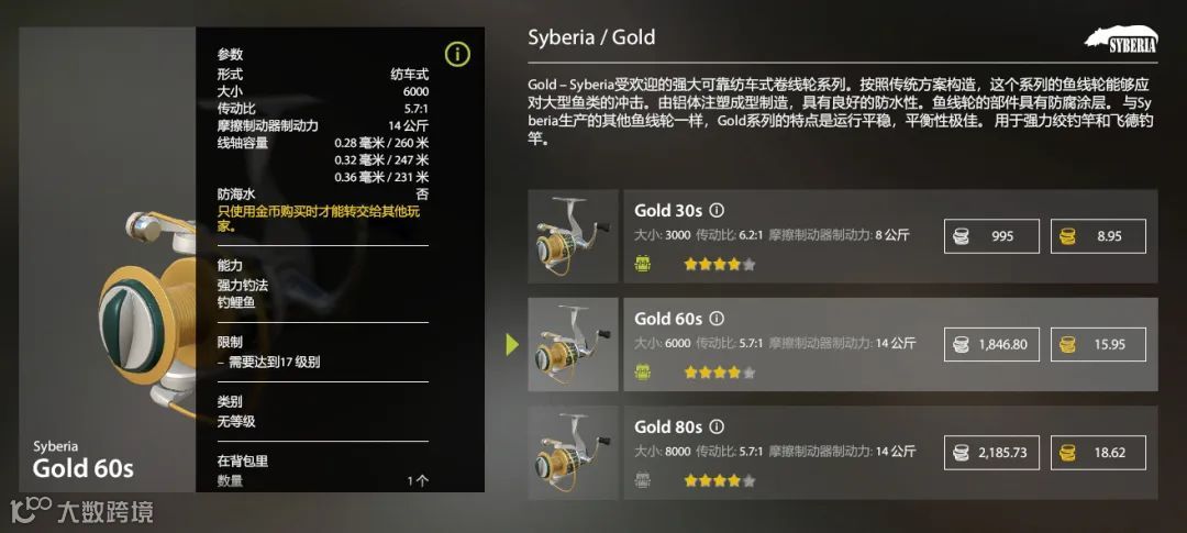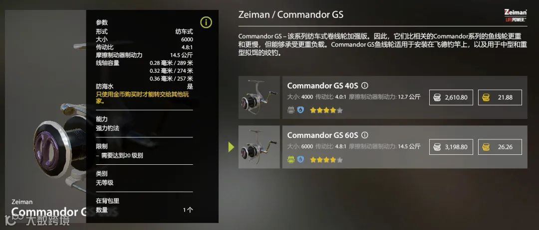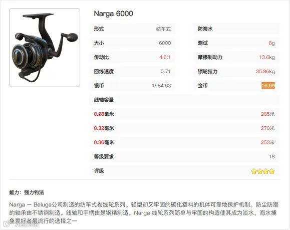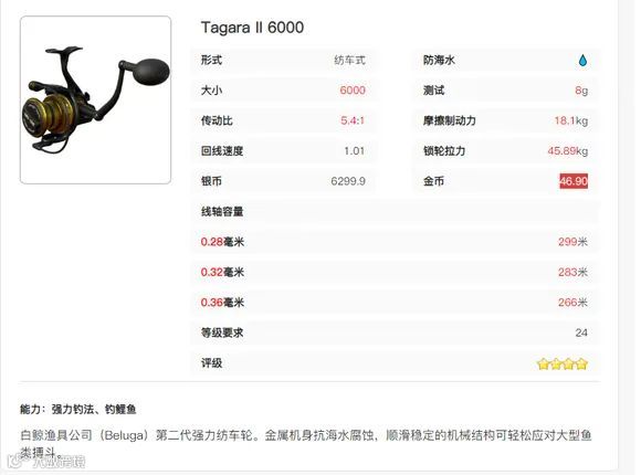 - 缺点:线杯容量小,面对大型蓝冠鱼风险高;成本过高,拖慢顶级装备获取节奏,不推荐新人配置。