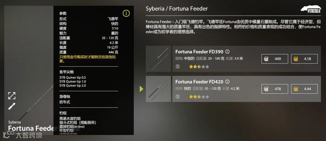 - 图灵10000:114.29K拉力,最耐磨损(40条鱼磨损0.1),但价格最高(45799银币)。