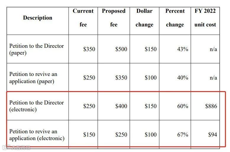 03、美国专利官费上涨明细