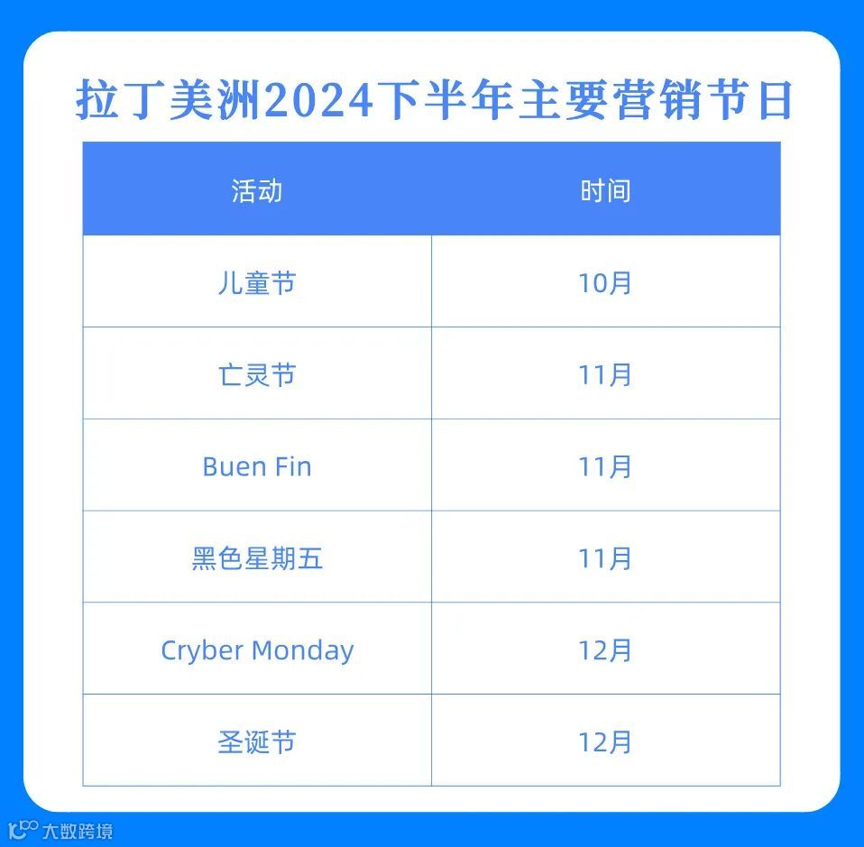 Hot Sale、Buen Fin:类似于美国的“黑色星期五”,是拉美地区一年一度大型的促销活动。这一时期拉美消费者会购买很多大件商品,如电子产品、家用电器、家具等,同时也涵盖了服装、鞋类和其他日常用品,适合全品类营销。