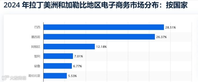 图:拉美电商市场占有率巴西第一、墨西哥第二,Statista 2024年4月
