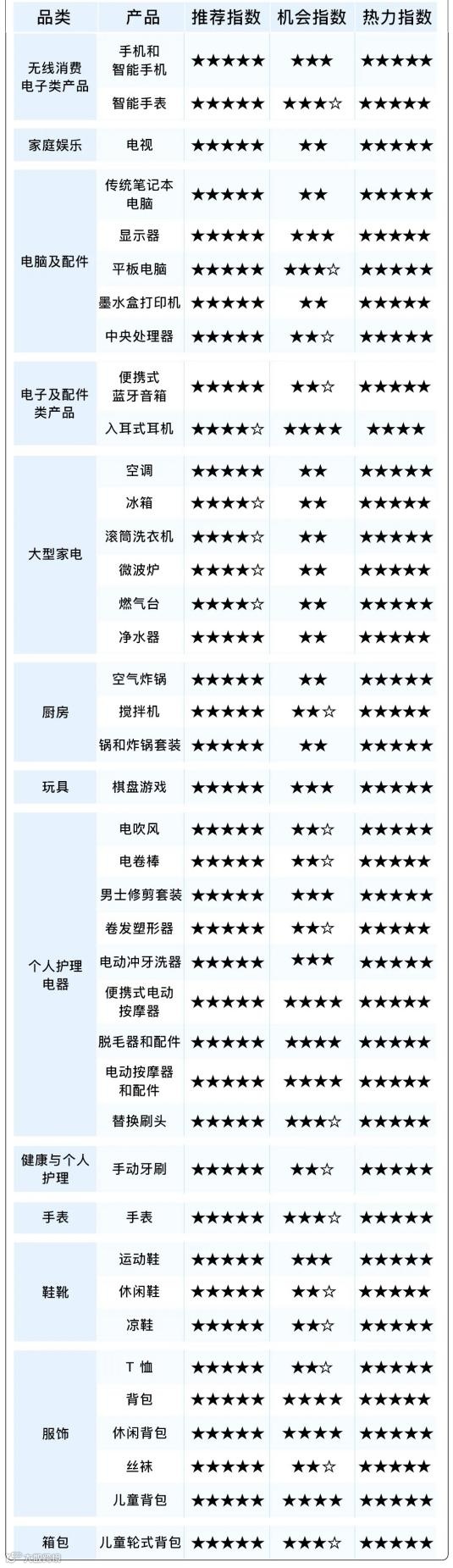 圣诞节:除了传统节日外,圣诞节在拉美地区也是一个重要的节日,通常伴随着一系列的庆祝活动和家庭聚会。圣诞装饰、食品是圣诞节销量最高的类目;儿童玩具、电子产品、香水通常是送礼物的首选产品;派对服饰、毛衣、围巾等是时装里需求量最高的细分类目。