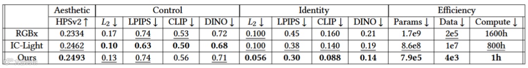 论文的关键见解是,图像中的光照关系本质上类似于自注意力层中的标记交互,因此在自注意力层中得到了最佳体现。基于此以及其他关于早期扩散迭代重要性的分析,PractiLight 训练了一个轻量级的 LoRA 回归器,使用一小组训练图像来生成给定图像的直接辐照度图。然后利用该回归器,通过分类器引导,将所需的光照融入到另一幅图像的生成过程中。这种精心的设计能够很好地泛化到各种条件和图像领域。在质量和控制方面展现了最先进的性能,并且在各种场景类型上与领先成果相比,具有经过验证的参数和数据效率。论文希望这项工作能够证实,通过利用基础知识可以切实控制图像照明,从而实现实用和通用的重新照明。