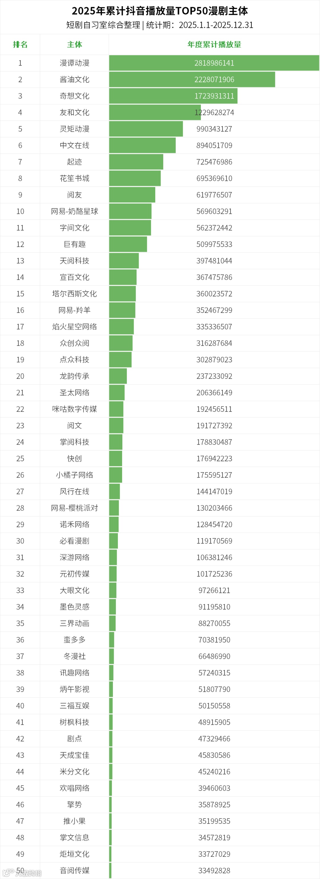 酱油文化:月营收达5000万,月产100-150部漫剧,团队规模维持在1000人以上并持续扩张,成为漫剧领域首个获得阅文投资扶持的公司。