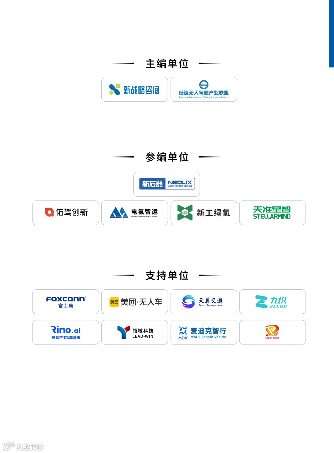 来源:深圳市新产研咨询服务、新战略低速无人驾驶产业研究所