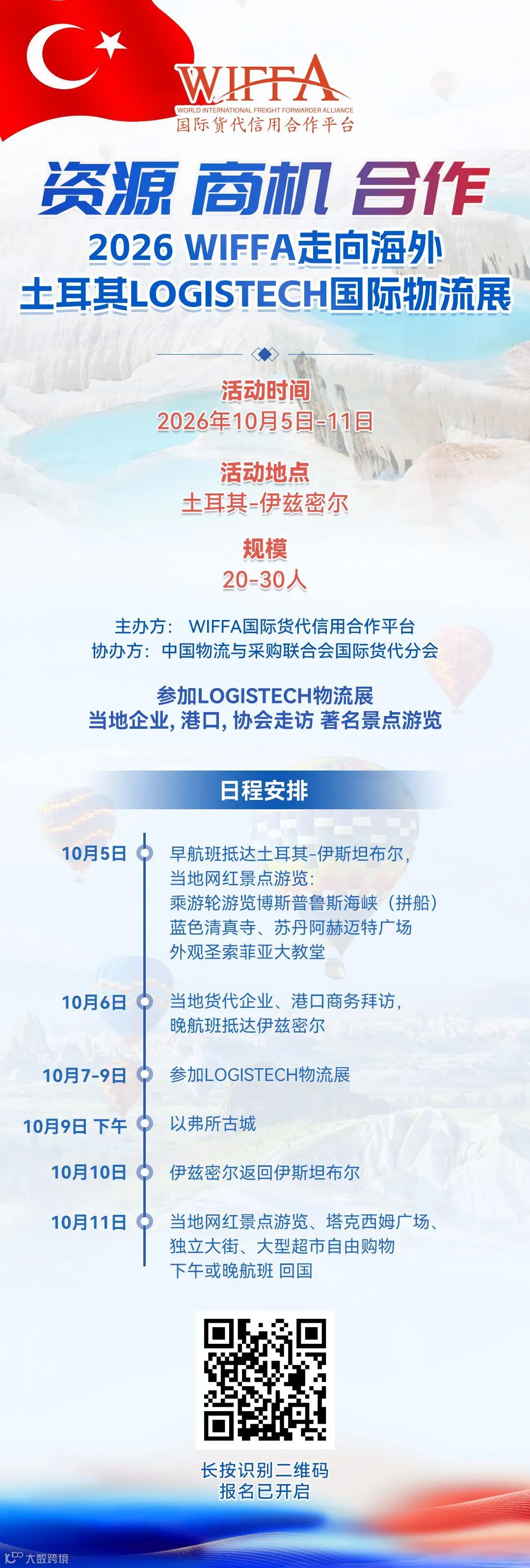 WIFFA2026海外行——走进土耳其:LOGISTECH物流展将组织中国货代及物流企业以联合展团形式参展,助力企业拓展海外市场。本次活动旨在帮助企业对接当地资源、建立跨境供应链网络、寻找合作伙伴与潜在客户,并安排实地走访当地企业、举办商务沙龙、开展行业考察与交流活动。