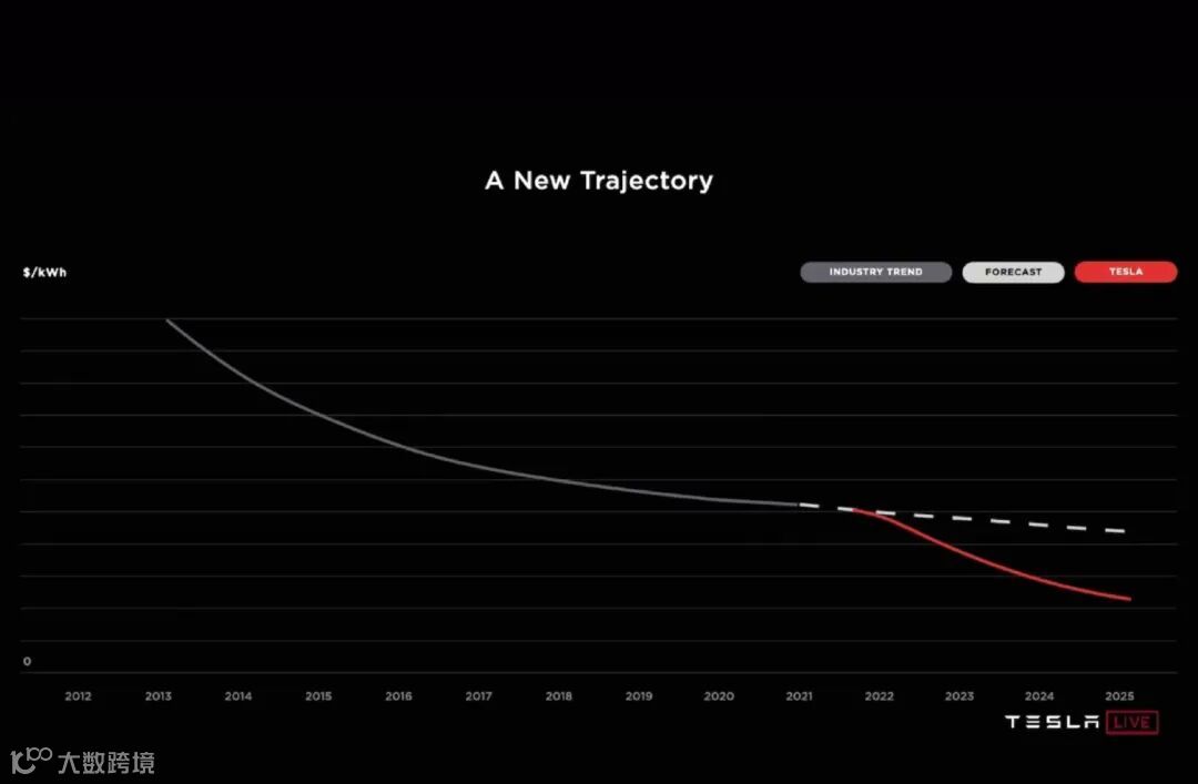 2020年特斯拉“电池日”提出4680电池四大目标:单体能量密度提升5倍、续航提升16%、功率提升6倍、每千瓦时成本下降56%。该电池命名源于其46mm直径、80mm高度的圆柱结构,相较2170电池,单体容量更高、电芯数量更少、结构件用量更低。