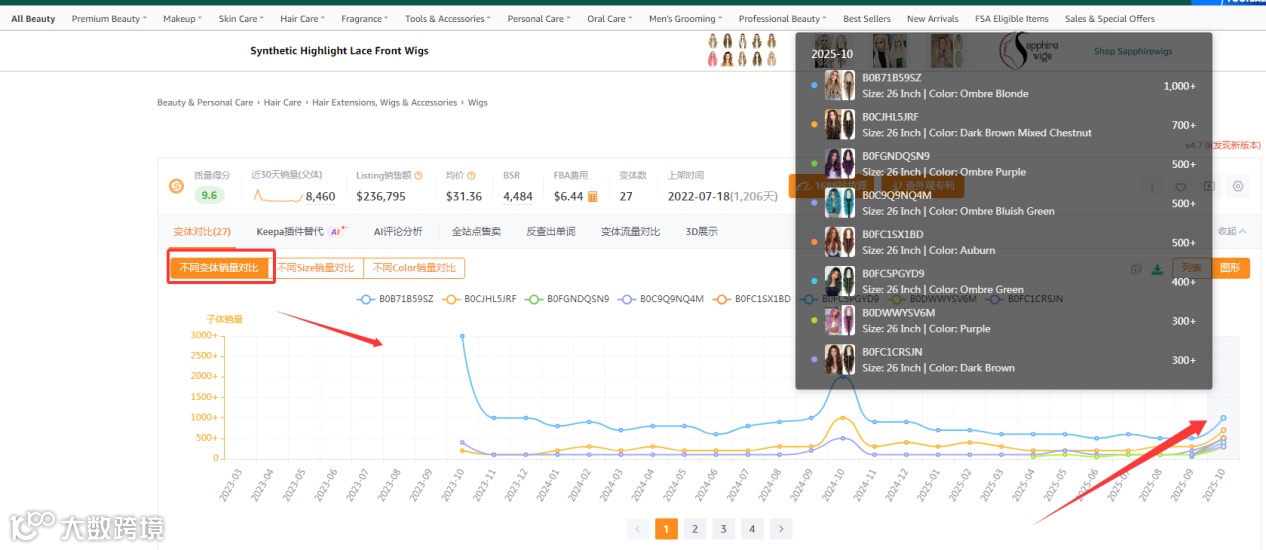 分析要点: 查看竞品变体数量(颜色、尺寸、功能延伸)及各变体的销量占比。