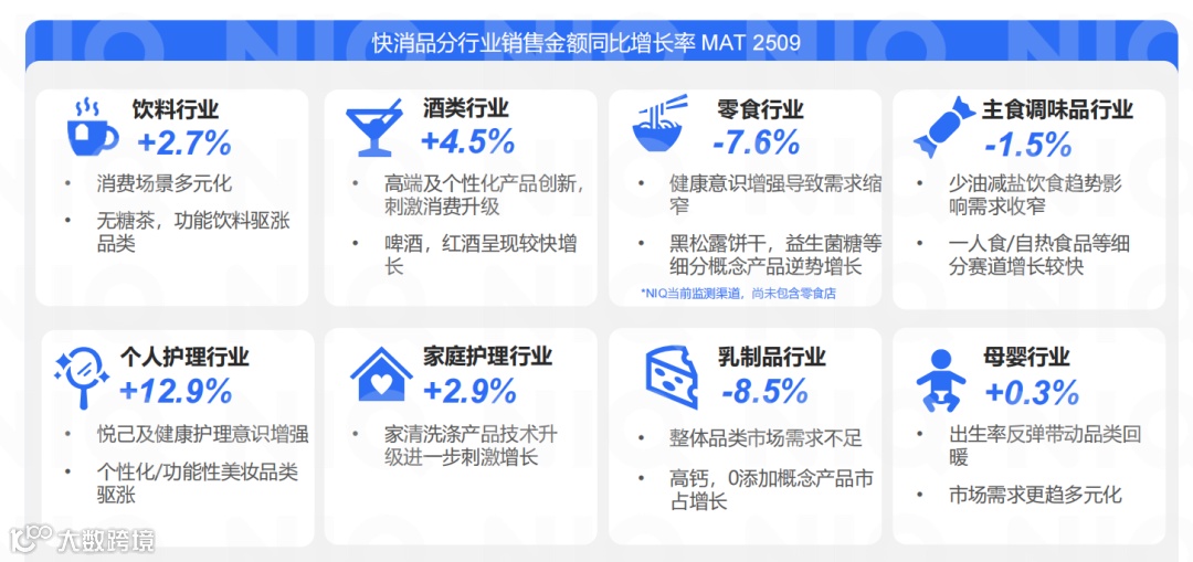 - 增速与渠道格局加速分化:快消品全渠道增速3.4%,线上增18.5%,线下降5.0%;会员仓储店增4%,零食店增20%,O2O前置仓增速高达25%,新兴渠道成核心引擎。