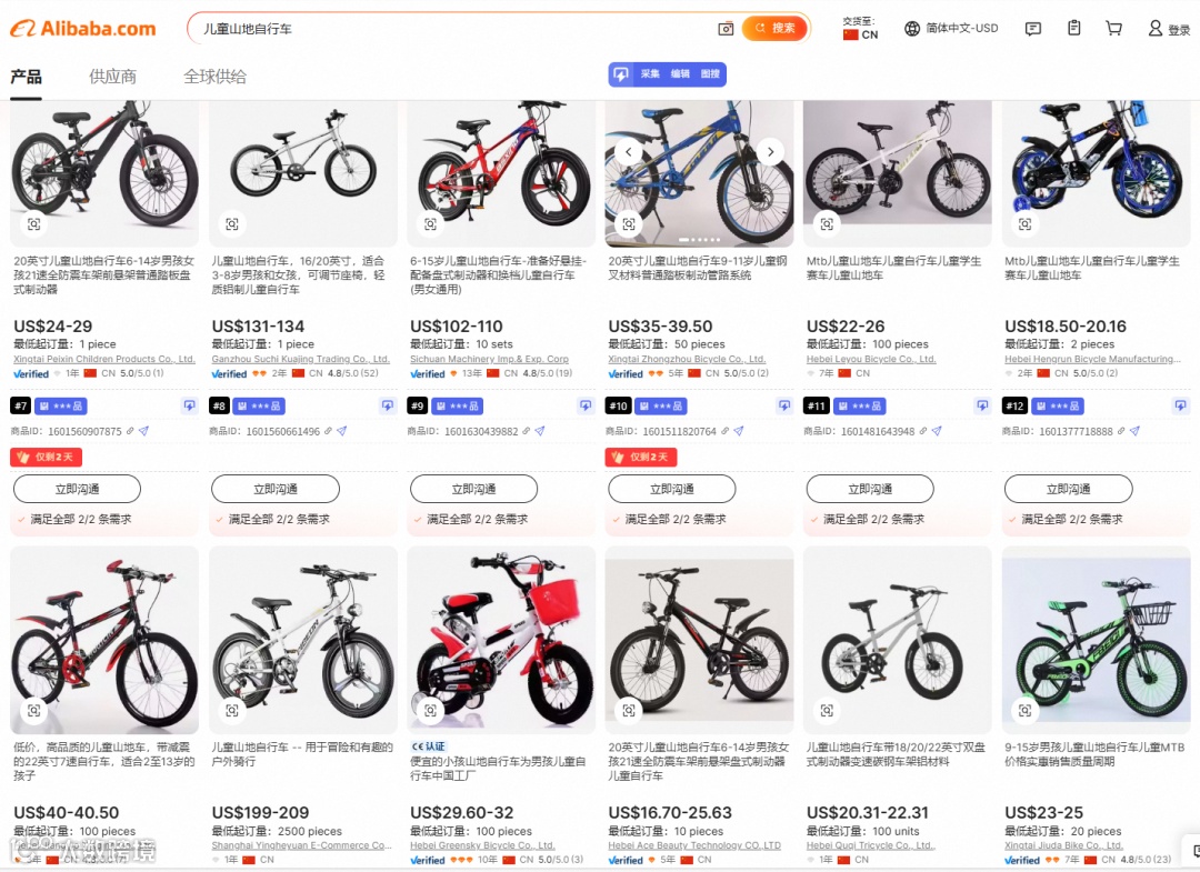 (跨境B2B平台阿里巴巴国际站上儿童自行车)