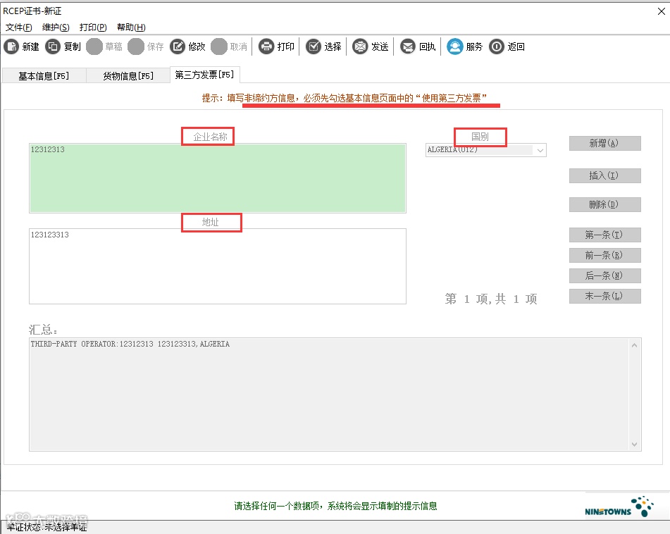 (1) 申请原产地证书允许填报第三方或非缔约方,贸易上有需求时可直接填报。