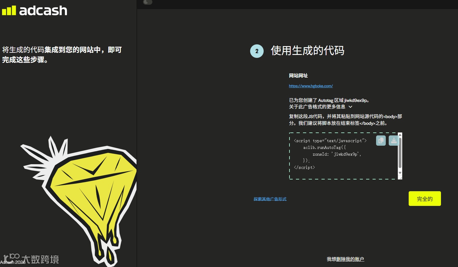 原理很简单:我们自己搭建一个内容网站,并接入 Adcash 的广告代码。利用AdsPower 指纹浏览器模拟真实的海外用户访问环境,配合自动化脚本模拟点击和浏览,产生真实的千次展示(CPM)收益。
