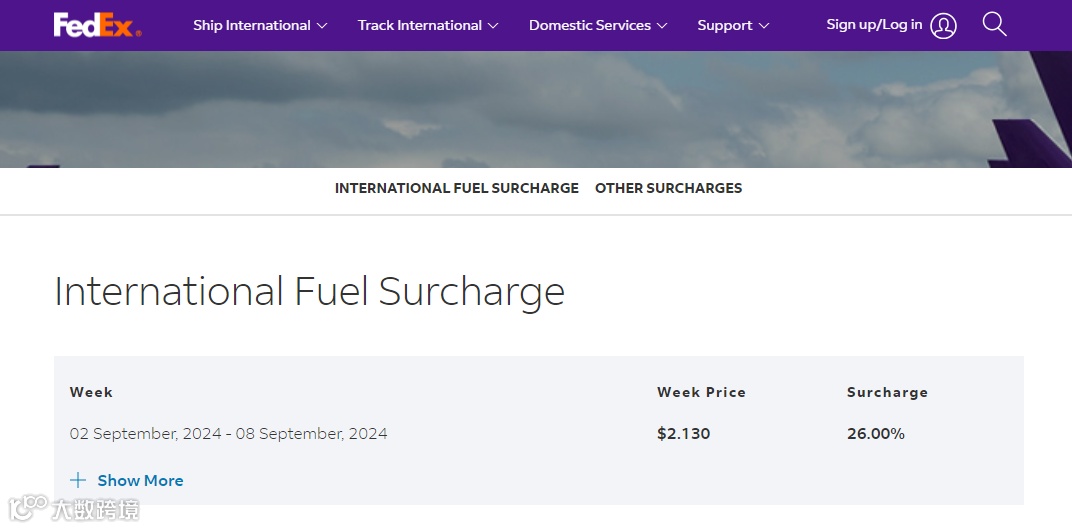 /图源:FedEx,2024年9月2日-9月8日燃油附加费