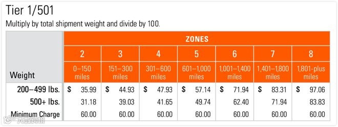 举个例子,FedEx以发货地址为圆心,直径范围0-150英里的区域为2区,直径范围151-300英里的区域则划分为3区,以此类推。(仅供参考,具体以快递公司官方信息为准。)