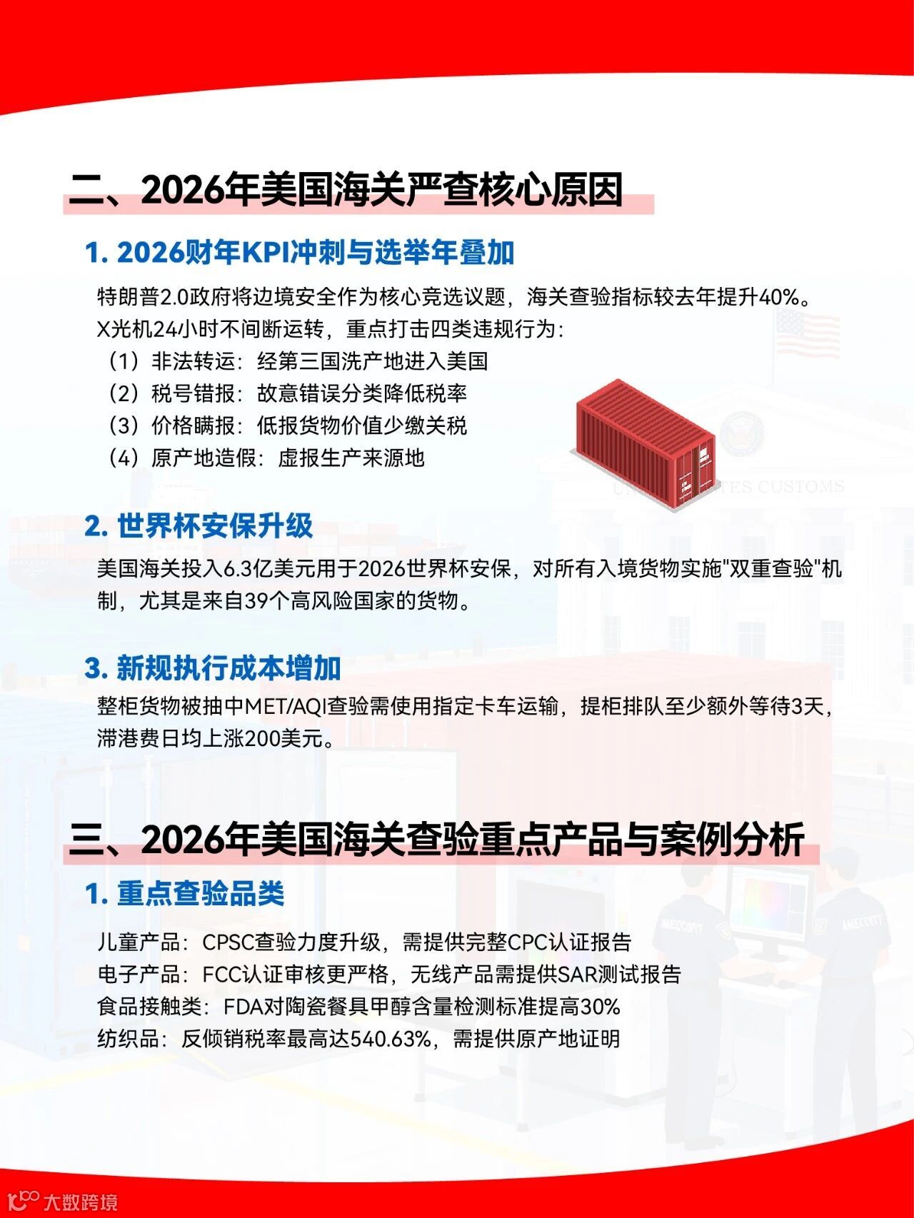 美国海关投入6.3亿美元用于2026世界杯安保,对所有入境货物实施"双重查验"机制,尤其是来自39个高风险国家的货物。