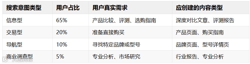 谷歌算法日益精于理解用户搜索背后的真实意图。当页面内容与搜索意图不匹配时,即使关键词匹配度很高,也难以获得良好排名。搜索意图主要分为:信息型(获取知识)、导航型(寻找特定网站)、交易型(意图购买)和商业调查型(对比产品)。