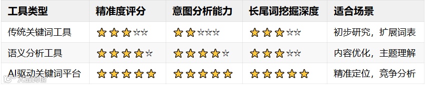 决策阶段 → “购买”、“价格”、“优惠码”等交易型关键词