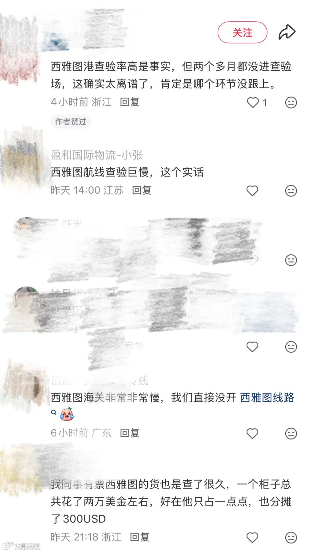 - 西雅图港、塔科马港:查验率大幅上升,但查验场地受限,整体处理进度趋缓。