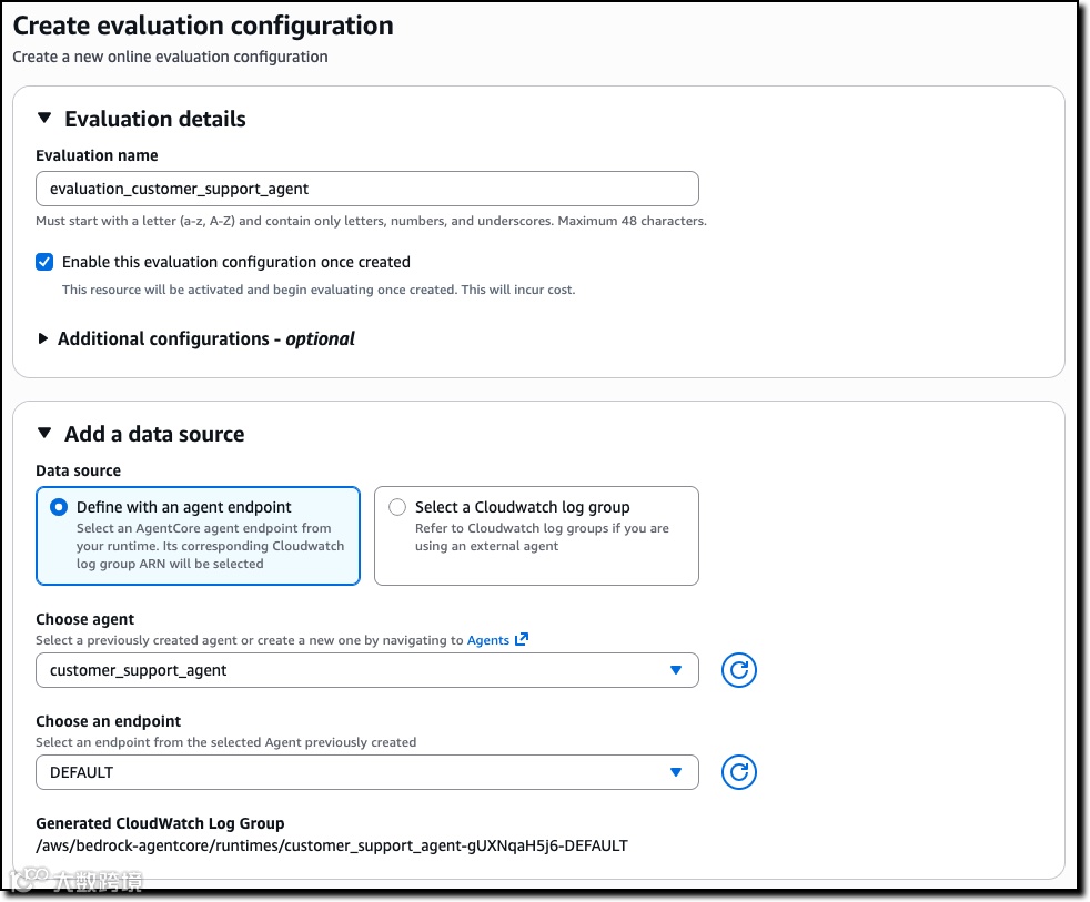 评估数据自动采集、实时打分,结果与Observability洞察统一集成至Amazon CloudWatch仪表盘。支持按采样率与过滤条件灵活配置任务,权限可复用现有IAM角色。