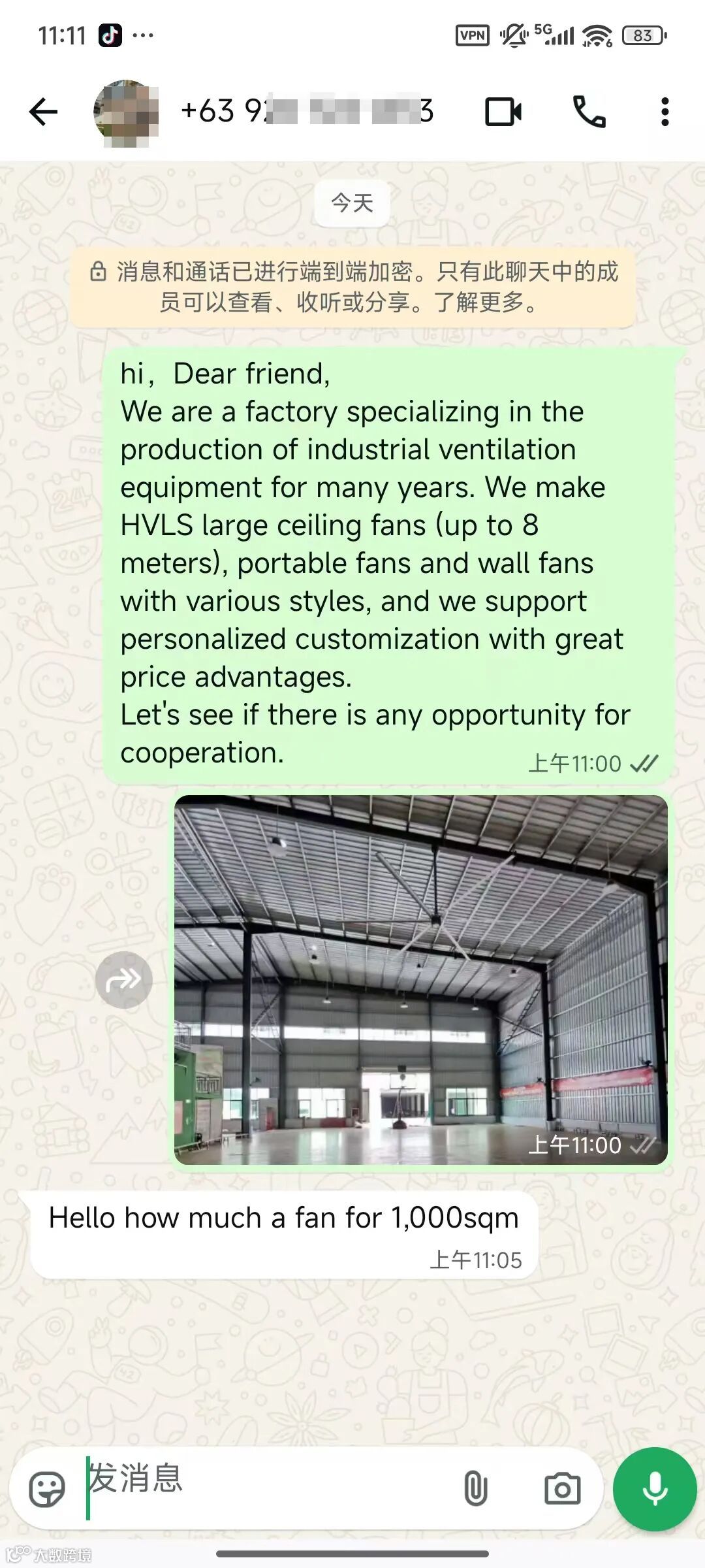 用户在WhatsApp上收到的菲律宾客户询盘: