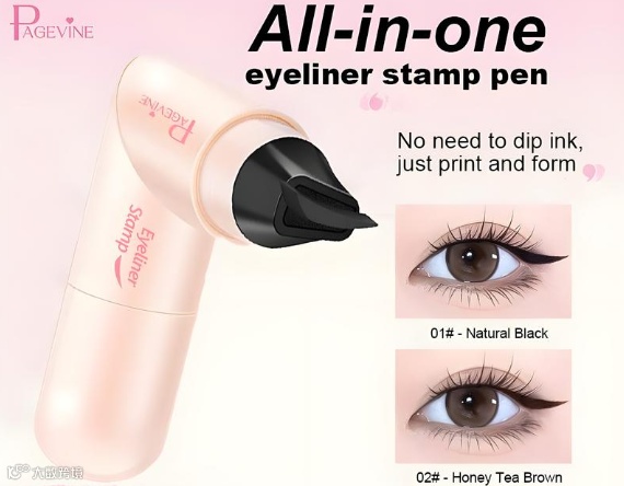 其双头旋转结构适配左右眼,印章端精准贴合眼尾弧度,轻按即出自然翼状线条,兼具速干防晕、多色可选、便携易用等特点,直击化妆新手“手残”痛点。