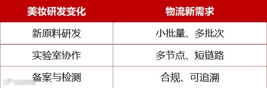 当竞争围绕原料、配方与研发能力展开,物流介入节点亦整体前移——需求不再集中于“工厂→仓库→平台→消费者”链路末端,而是大量出现在研发测试、样品流转、原料调拨等前端环节。