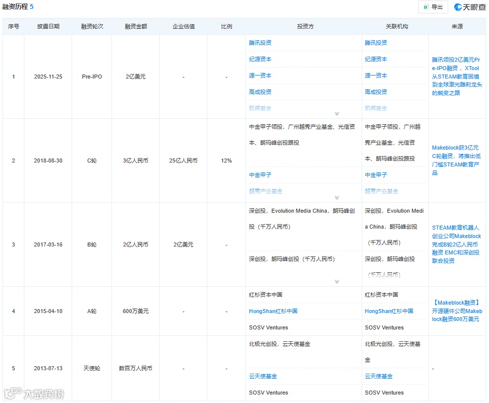 xTool融资历程 图源:天眼查