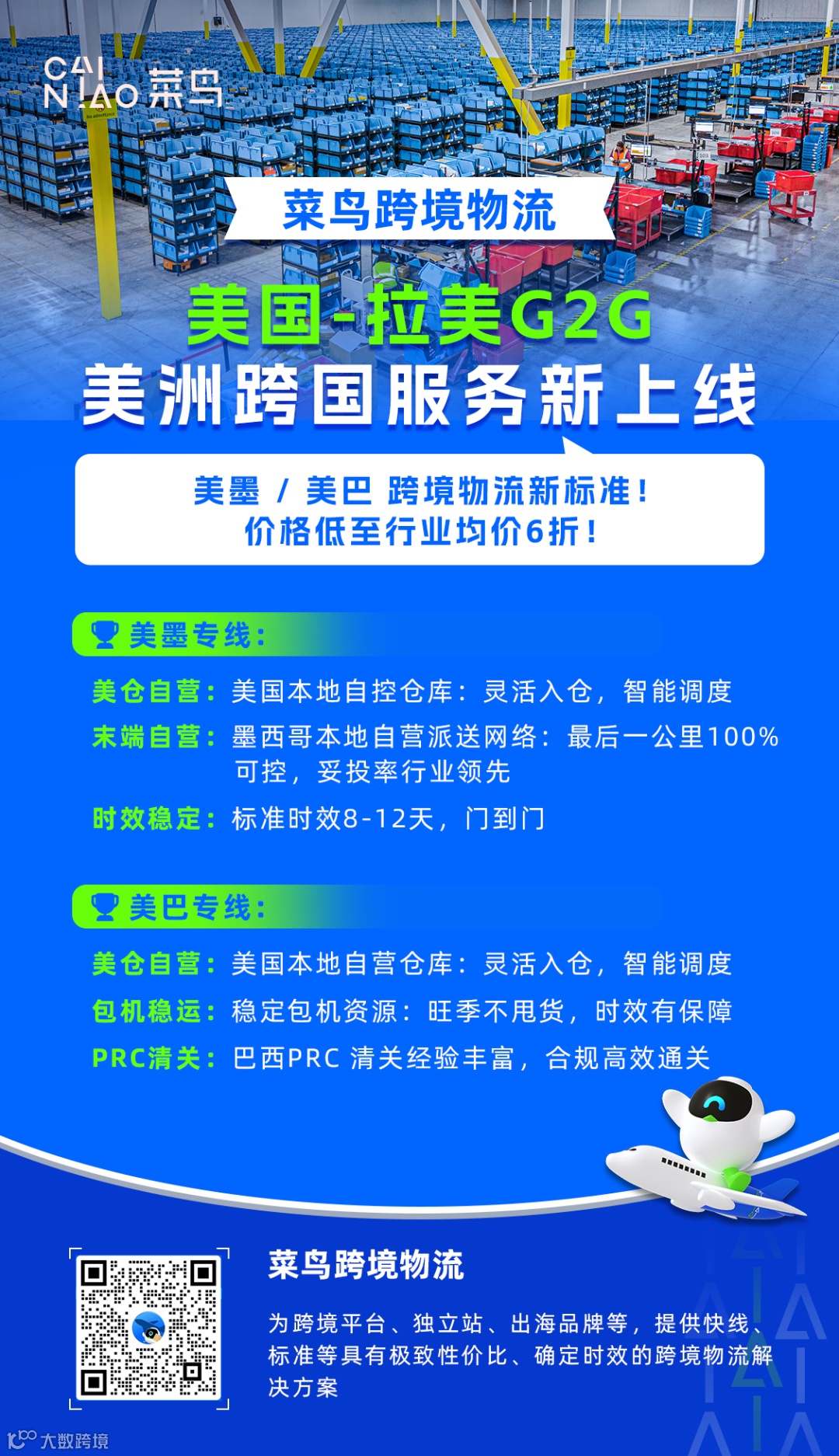 1月9日,菜鸟宣布上线美洲G2G(国家间)跨境物流服务,正式建成覆盖亚洲、欧洲、美洲三大洲的全球G2G网络。首期开通美国至墨西哥跨境专线,覆盖美西核心电商区域及墨西哥99%地区,定价仅为行业均价六折,显著降低跨境履约成本。