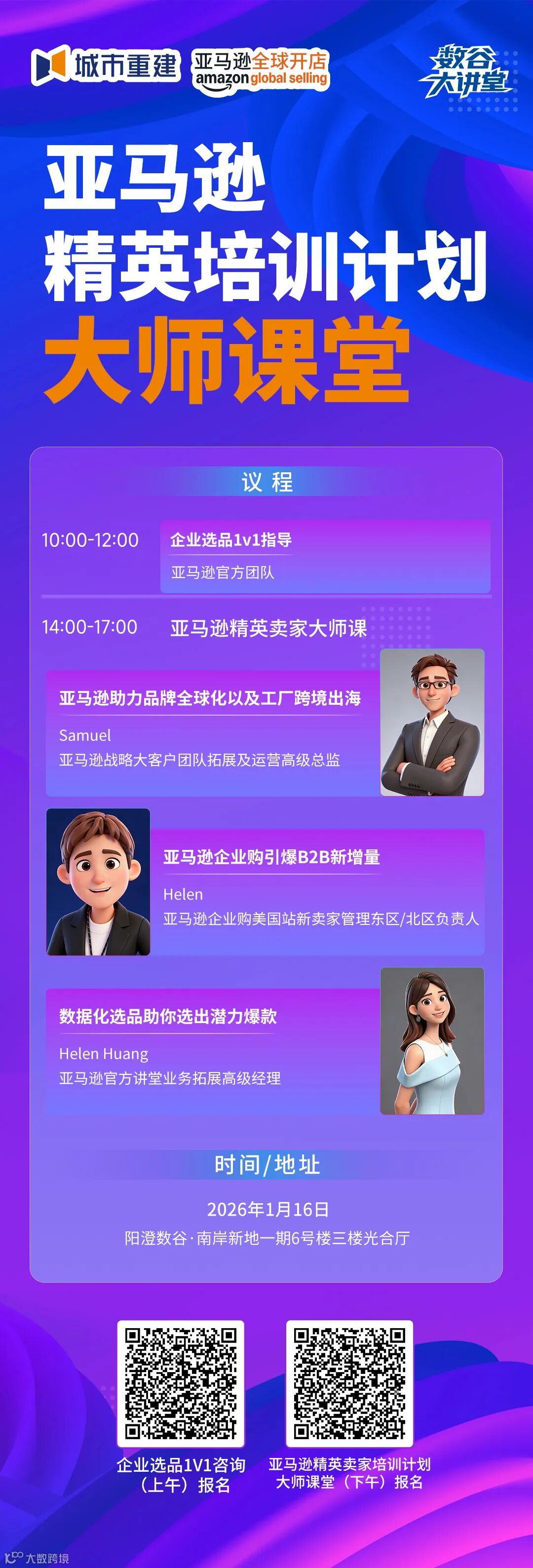 当前正值跨境电商年终冲刺与年初布局的关键阶段。1月16日,亚马逊精英卖家培训计划第二期正式开启。