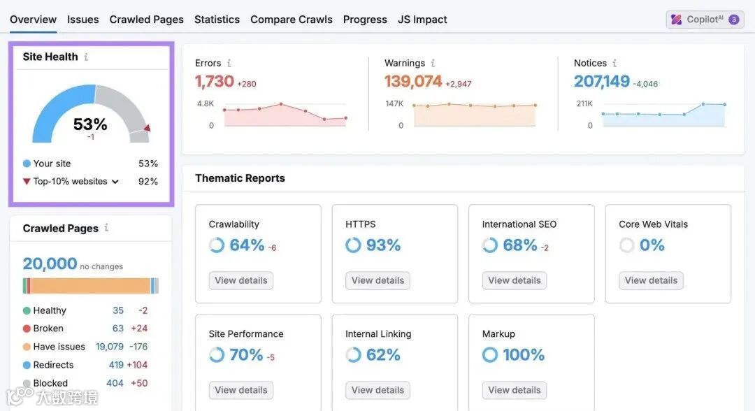 借助Semrush Site Audit等专业爬虫工具,可批量检测140+类技术问题。流程如下: