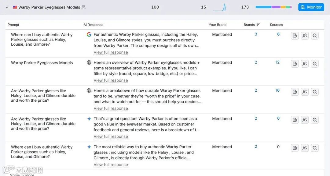 - 观察品牌是否被提及、语境是否匹配、排序是否靠前