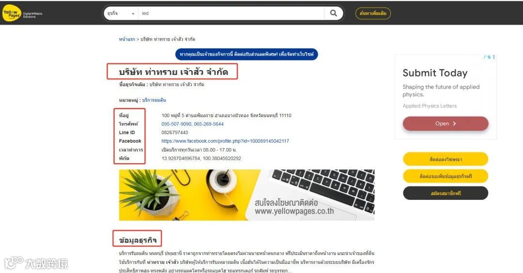 Thailandpages 是泰国一个实用的B2B 在线商业名录平台,相当于泰国本土的企业对接线上市场,提供信息检索服务,包括工业产品和服务的更新以及通过网站提供的各种商业新闻。企业可在平台寻找业务所需的各类资源,还能对比不同供应商的价格,查看其他企业对该供应商的购买评价;同时,有产品或服务可提供的企业,也能在平台上找到采购方,达成商业合作。