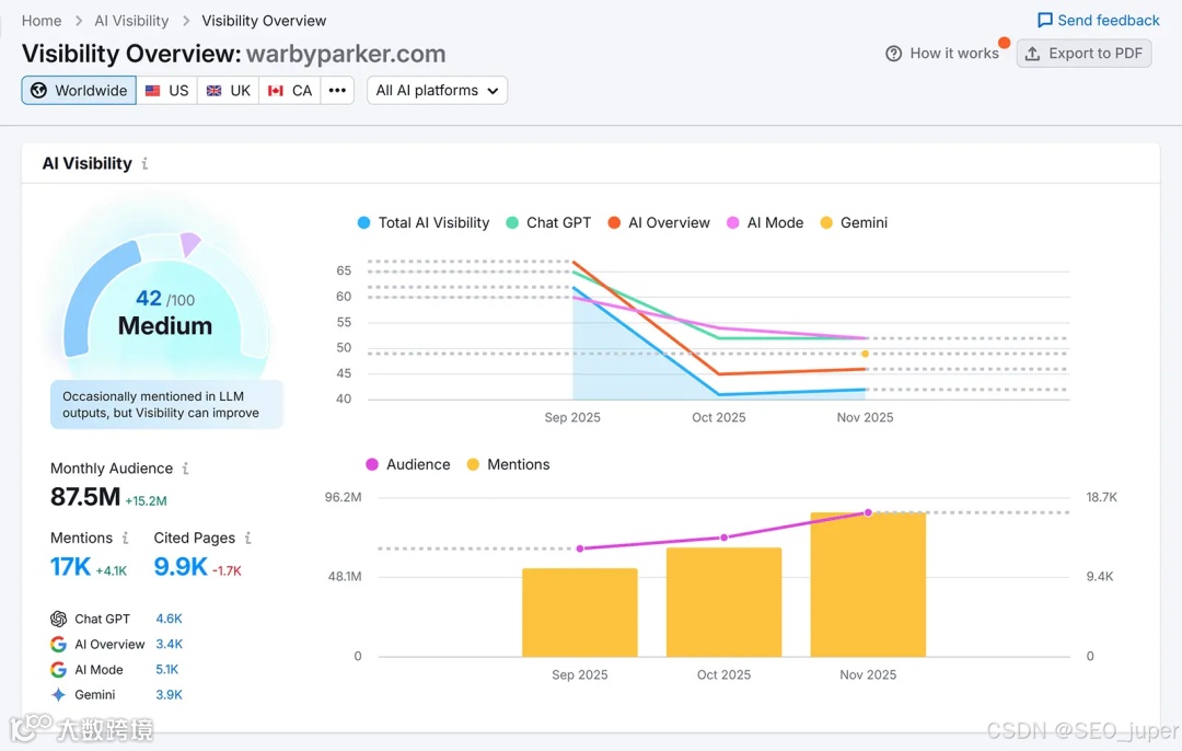 最佳用途:衡量并提升品牌在AI驱动搜索体验中的可见度。