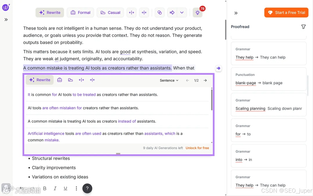 当你已经有草稿并想提升阅读效果时,Wordtune 很有帮助。它可以用于: