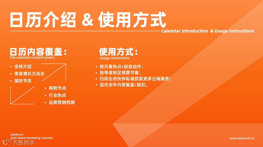 不同于单纯罗列节日与大促节点,《2026全球营销日历》的核心价值,在于把时间节点转化为可规划的节奏参考。