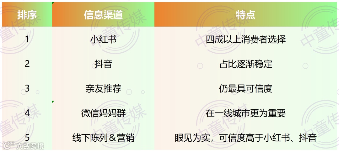 短视频平台已成为母婴信息获取第一入口,小红书已超越亲友推荐跃居首位,抖音紧随其后,传统口碑传播退居第三——数字平台正在重塑消费决策路径。
