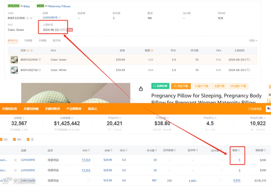 2024.09.05亚马逊选品推荐(仅供参考):孕妇枕护腰u型圆形枕头
