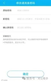 在通用盾管理界面选择“修改通用盾密码”,输入原密码及新密码(6-8位,支持数字、字母或组合,区分大小写),点击“确定”。