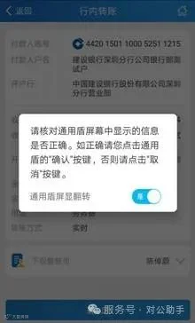 插入通用盾后点击“确认”,输入密码并通过验证后,需再次核对通用盾屏幕信息,确认无误后点击“确认”键完成交易。