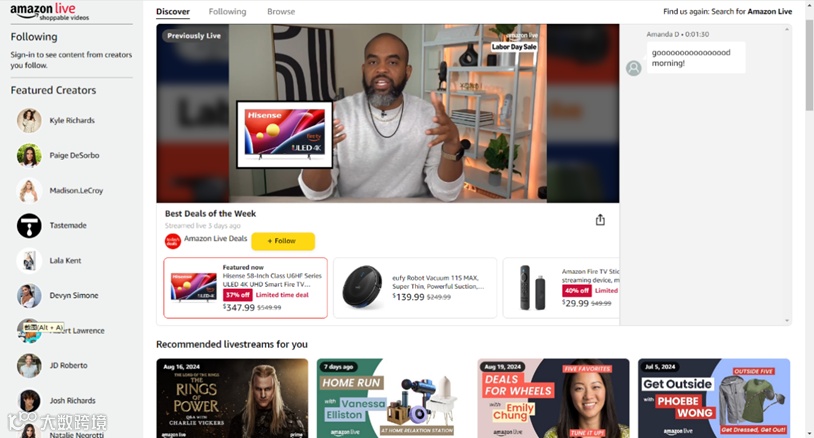 | Amazon Live主页截图