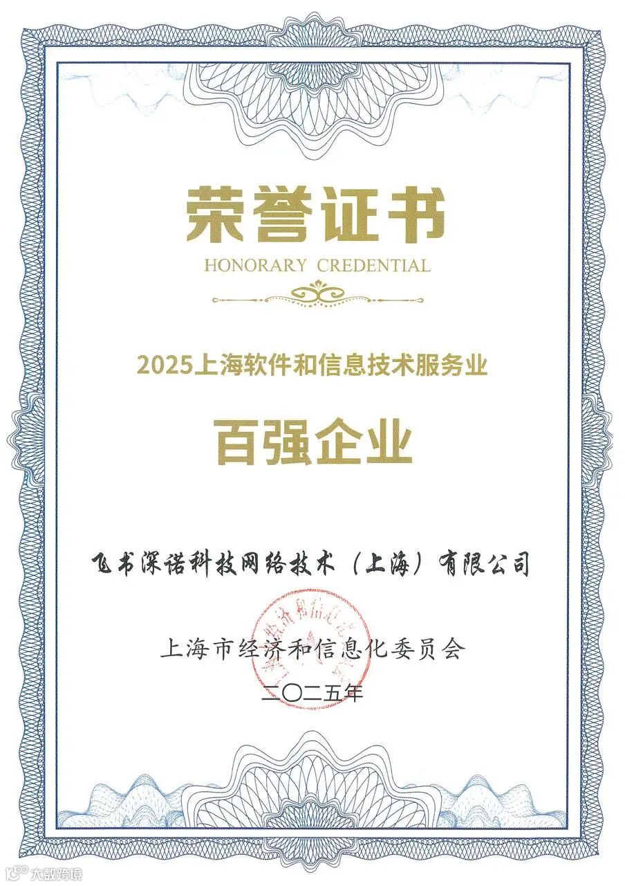 近日,飞书深诺集团连续入选两项国家级权威榜单:经商务部、中央宣传部、文化和旅游部、国家广播电视总局联合认定,成功入选“2025–2026年度国家文化出口重点企业”;同时,在上海市经济和信息化委员会发布的“2025上海软件和信息技术服务业百强企业”中榜上有名。