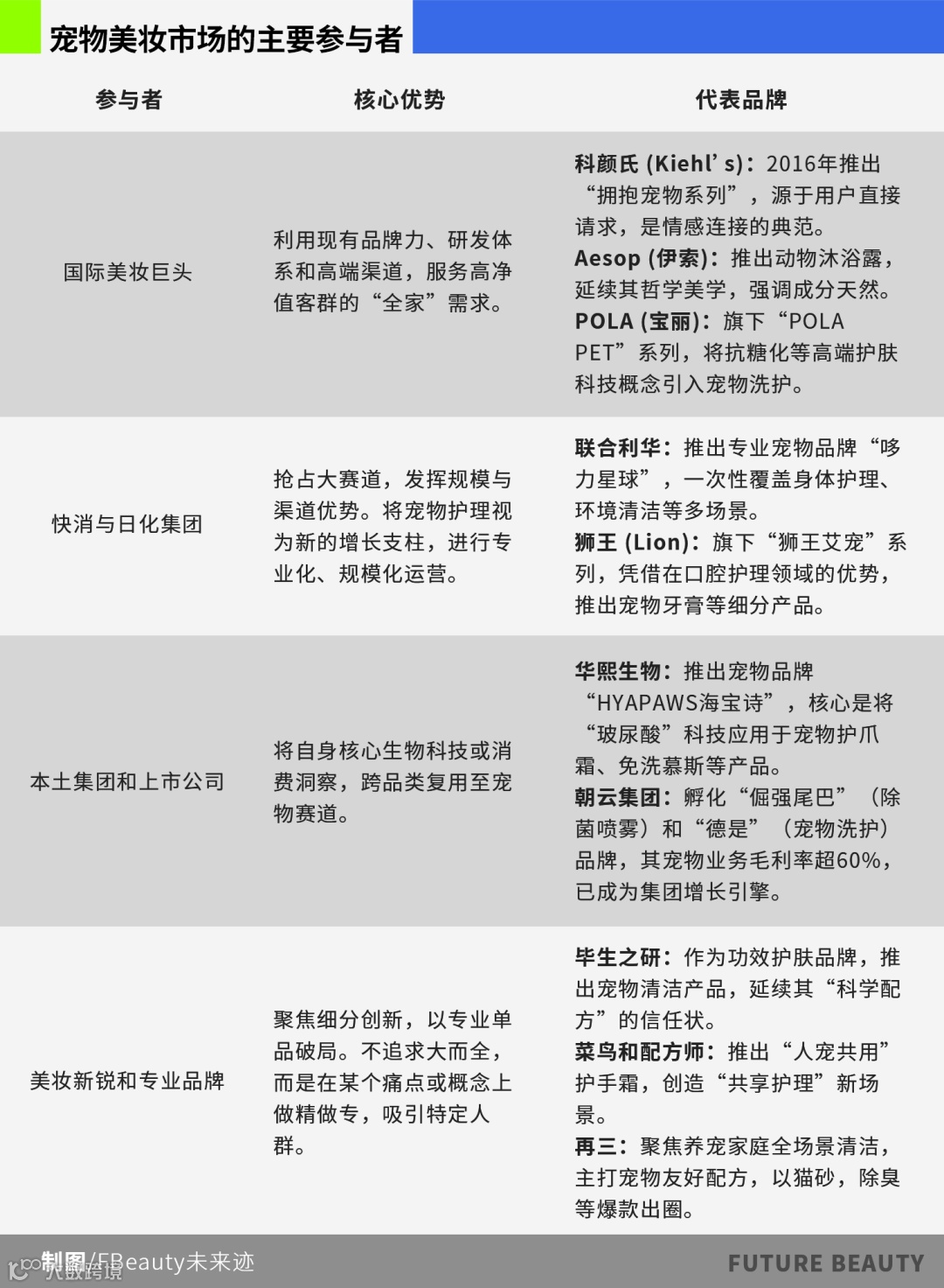 赛道升温,格局初显。国际美妆巨头、本土生物科技公司及专业品牌,正基于各自优势展开关于“毛孩子”健康与美丽的商业卡位。