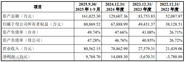 报告期内,公司营业收入分别为2.14亿元、2.76亿元、7.89亿元、8.06亿元;扣非归母净利润分别为-109.53万元、-1752.02万元、1.75亿元、1.26亿元。