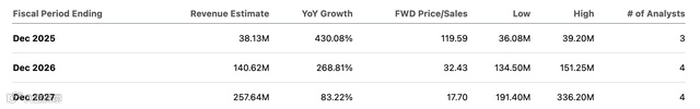 尽管2027年收入目标仅为2.5亿美元,当前估值已隐含远超该目标的增长预期。Q3 EBITDA仍亏损880万美元,但现金流压力已缓解,收入呈加速上升趋势。