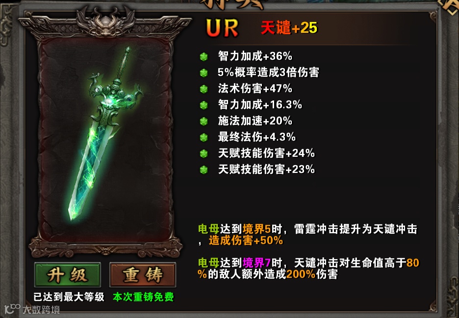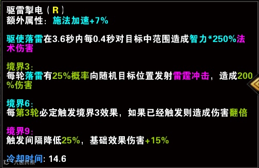 每轮落雷有25%概率向随机目标位置发射雷霆冲击