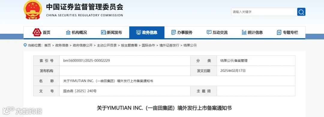 2月17日,中国证监会国际合作部发布一亩田集团境外发行上市备案通知书,根据备案通知书,一亩田计划采用VIE架构,发行不超过196,169,769股普通股并在美国纳斯达克证券交易所上市。