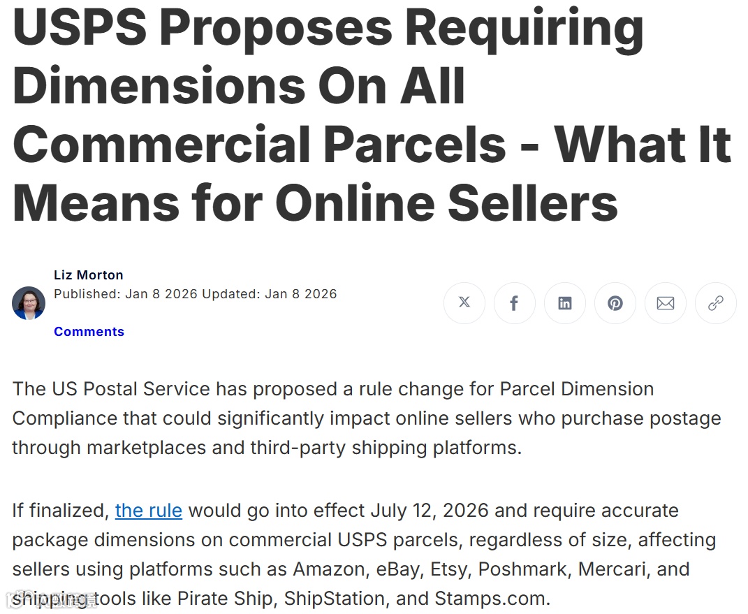 对依赖USPS发货的跨境卖家而言,精准尺寸申报不仅是合规要求,更是优化物流效率、提升客户体验的重要基础。建议尽早启动内部流程调整与系统适配,避免临期仓促应对引发运营波动。