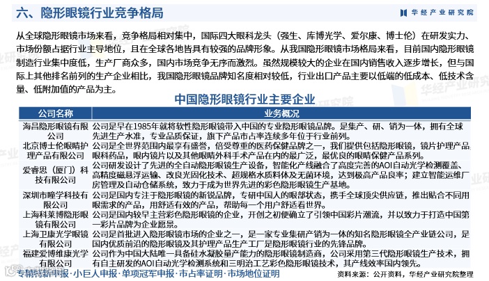 研究机构综合运用SCP、SWOT、PEST等分析模型,全面评估隐形眼镜行业产业链、盈利模式、竞争格局与发展环境,深入剖析政策、技术、市场风险等因素,编制《2026-2032年中国隐形眼镜行业市场深度研究及投资价值评估报告》。该报告为企业、科研单位及投资机构提供战略规划与投资决策的重要参考依据,涵盖行业发展轨迹、竞争态势、重点企业运营及未来趋势预测等内容,助力把握行业发展方向。