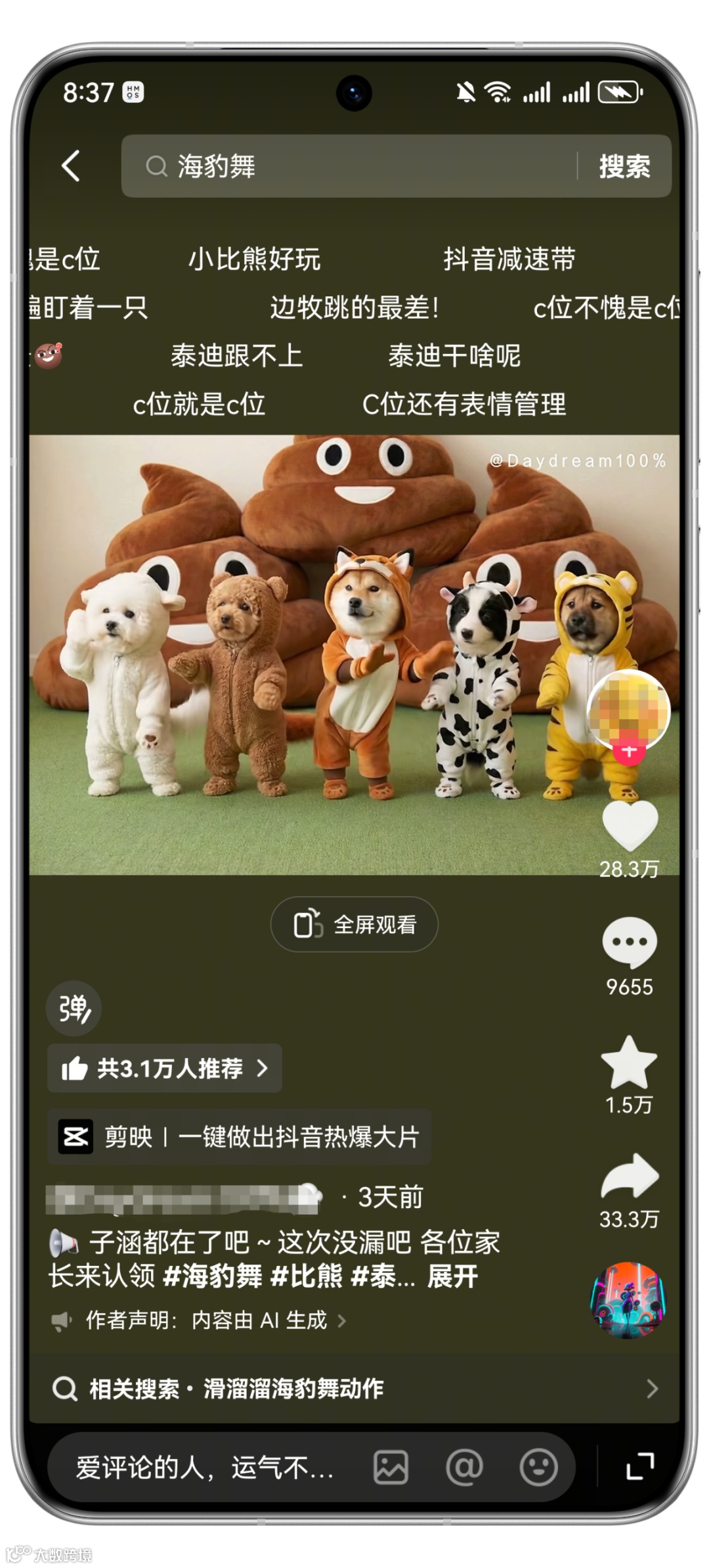 此类AI视频核心依赖“动作模仿”能力。掌握该功能,即可批量生成任意主体(人物、宠物、AI绘图等)的舞蹈类视频。